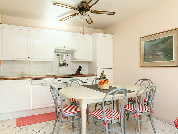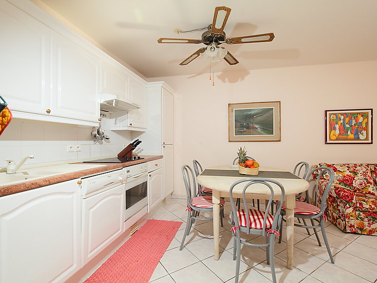 Apt 3 pièces 62 m2, au rez-de-chaussée. Aménagement fonctionnel et confortable: séjour/salle à manger avec 1 divan-lit double. Sortie sur la terrasse. 1 petite chambre avec 1 x 2 lits superposés. 1 chambre avec 1 grand-lit. Cuisine ouverte (four, lave-vaisselle, 4 plaques vitrocéramique, congélateur). Douche/bidet/WC, WC séparé. Chauffage électrique. Terrasse 18 m2. Meubles de terrasse. Vue sur le jardin. A disposition: lave-linge. Place de parking (couvert).