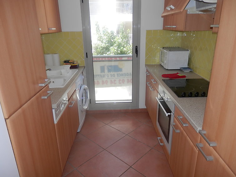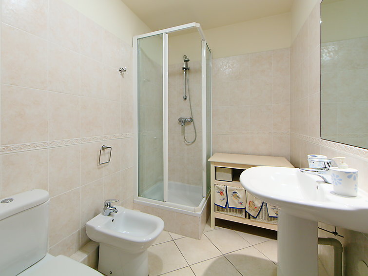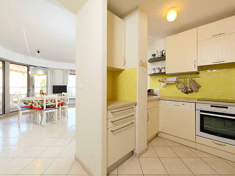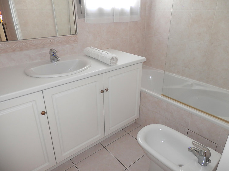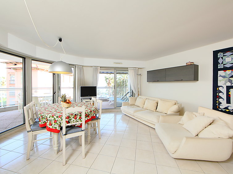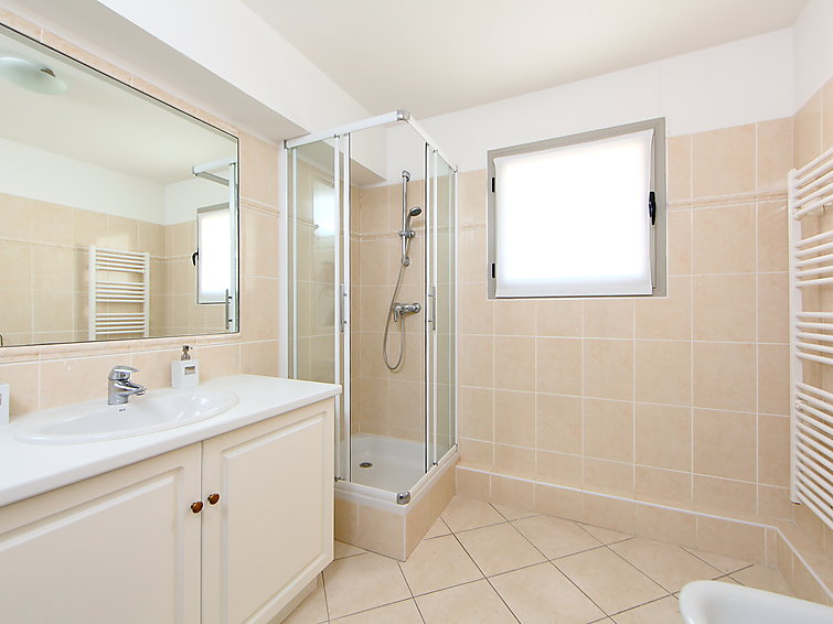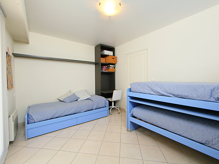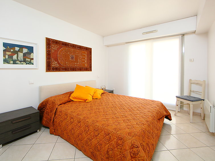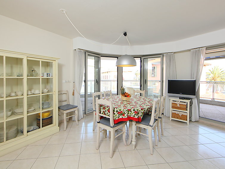 Apt 4 pièces 84 m2 au 2ème étage. Spacieux, aménagement confortable et agréable: séjour/salle à manger avec TV. Sortie sur la terrasse. 1 chambre avec 1 lit gigogne (2 pers. 2 x 80 cm, longueur 190 cm). 1 chambre avec 2 lits (80 cm, longueur 190 cm). Sortie sur le balcon. 1 chambre avec 1 grand-lit (160 cm, longueur 200 cm), douche/bidet/WC. Cuisine ouverte (4 plaques de cuisson, four, lave-vaisselle, congélateur). Douche/bidet/WC. Chauffage électrique. Grande terrasse 25 m2. Meubles de terrasse. Belle vue sur la mer. A disposition: lave-linge. Garage.
