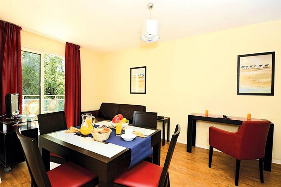 Appartement avec coin cuisine équipé de plaques vitrocéramiques, d'un réfrigérateur, d'un micro-ondes, d'un lave-vaisselle, des ustensiles de cuisine. Les couchages sont fournis avec couvertures, draps et oreillers. Linge de toilette.Télévision écran plat. Climatisation. WIFI en supplément. Balcon avec mobilier de jardin.A noter : pour les courts séjours la formule comprend : le linge de lit et de toilette, les lits faits à l'arrivée, la télévision et le ménage quotidien.