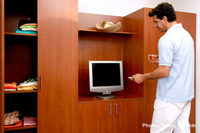 Studio pour 4 personnes, de 26m² environ, composé d'un séjour avec des lits gigognes (2 lits une personne - 90cm), d'une cabine avec 2 lits superposés (80cm), d'un coin cuisine équipé, d'une salle de bains avec baignoire et de WC séparés. Le studio est situé au rez-de-chaussée, 1er ou 2ème étage et vous disposerez d'une terrasse ou d'un balcon avec mobilier de jardin.