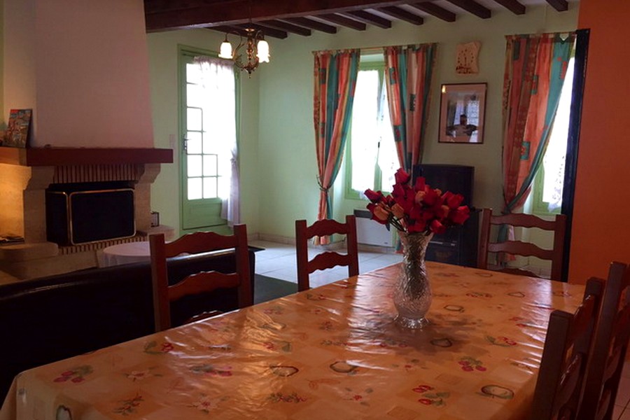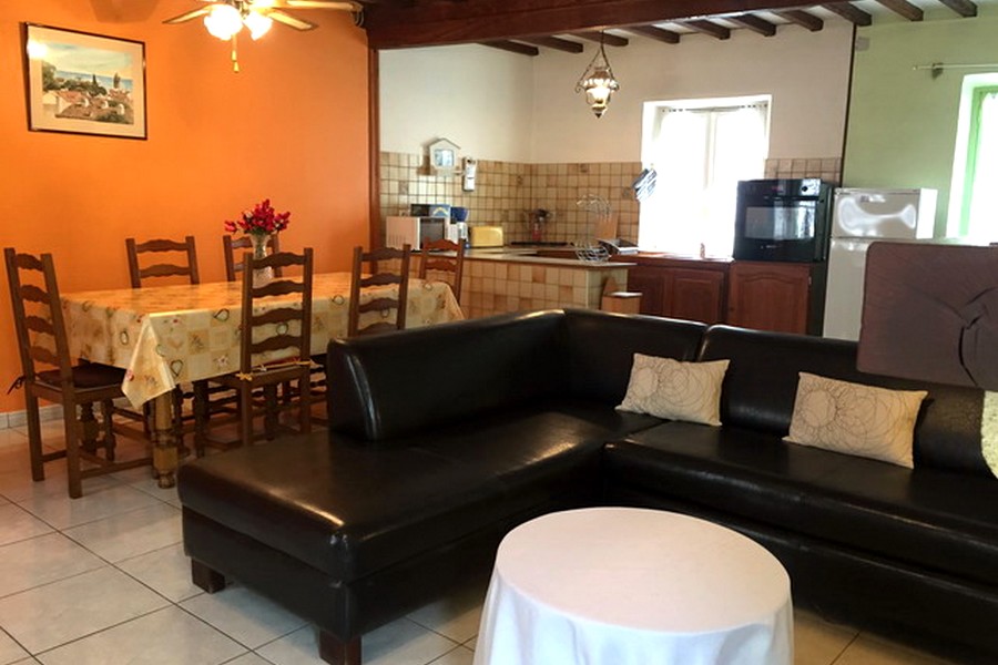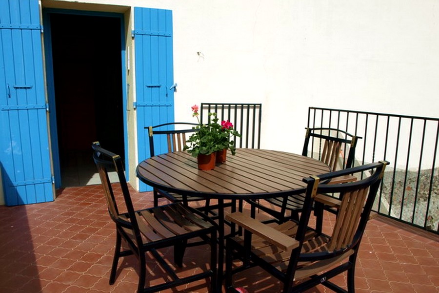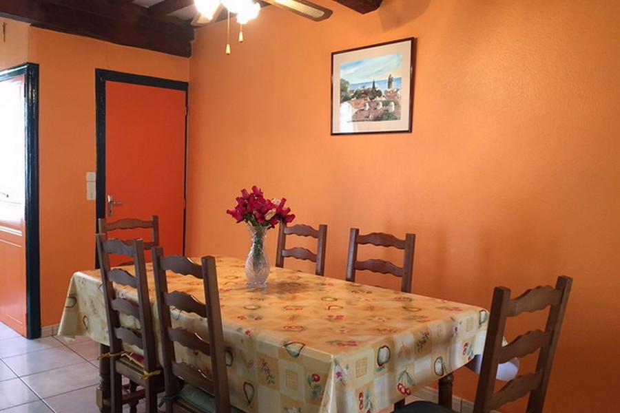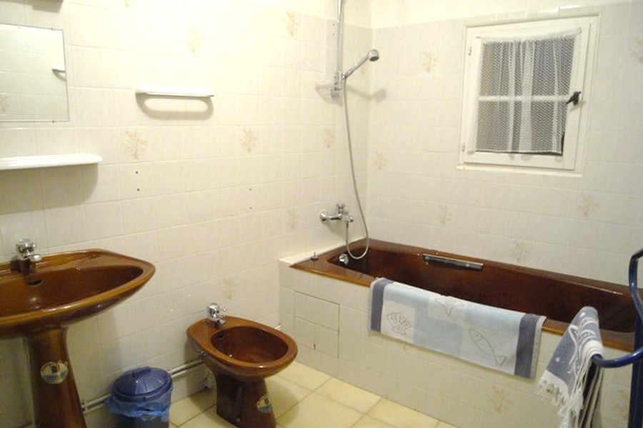 Maison d'environ 80m² pour 7 personnes, composé d'un séjour avec un canapé et un canapé-lit pour 2 personnes, de 2 chambres avec un lit double et 1 lit simple pliant, d'une cuisine équipée, d'une salle de bains avec douche, lavabo et WC, d'une seconde salle de bains avec baignoire et lavabo, d'un WC séparé, d'une petite cour et d'une terrasse.