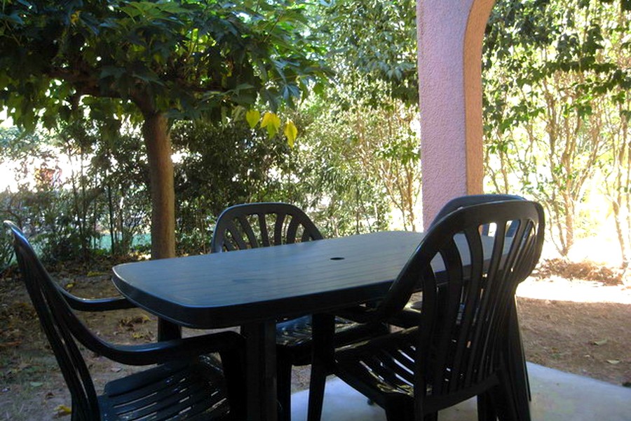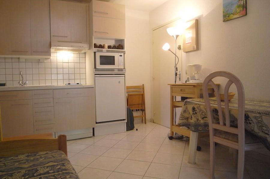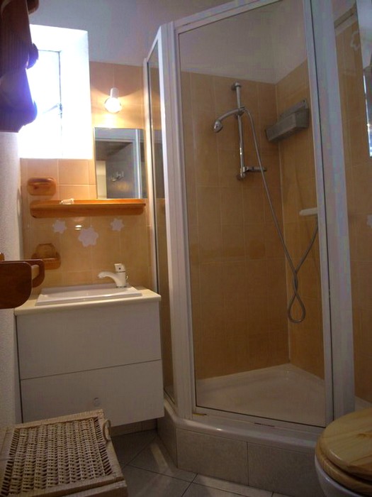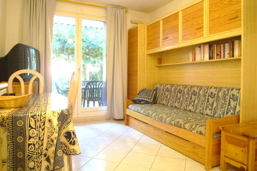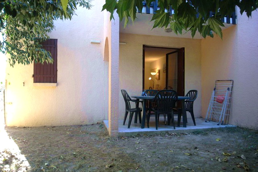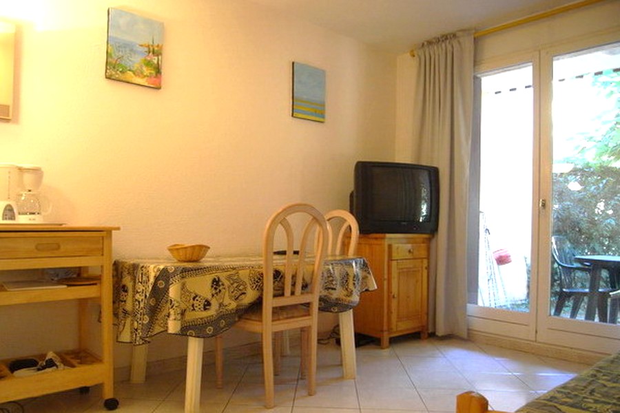 Appartement en rez-de chaussée d'environ 30m² pour 4 personnes, composé d'un coin cuisine équipé, d'un séjour avec 2 lits gigognes, d'une chambre avec 1 lit double, d'une salle de bains avec douche et WC, d'une terrasse et d'un jardinet.