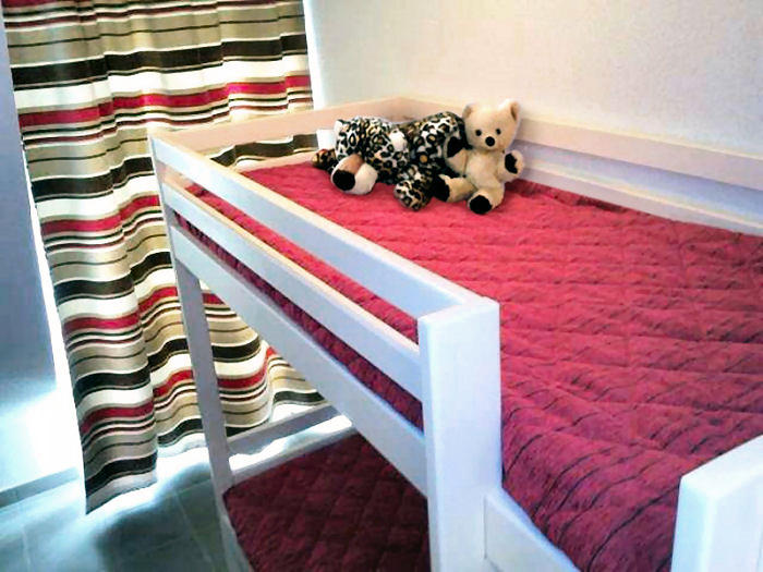 Studio alcôve 4 personnes de 35m², composé d'un séjour avec un canapé-lit convertible pour 2 personnes, d'un coin alcôve bien isolé du séjour à l'entrée du logement avec 2 lits superposés, d'une kitchenette bien équipée et d'une salle de bains avec toilettes. Studio avec un balcon de 3m², la plupart disposent d'une vue mer.