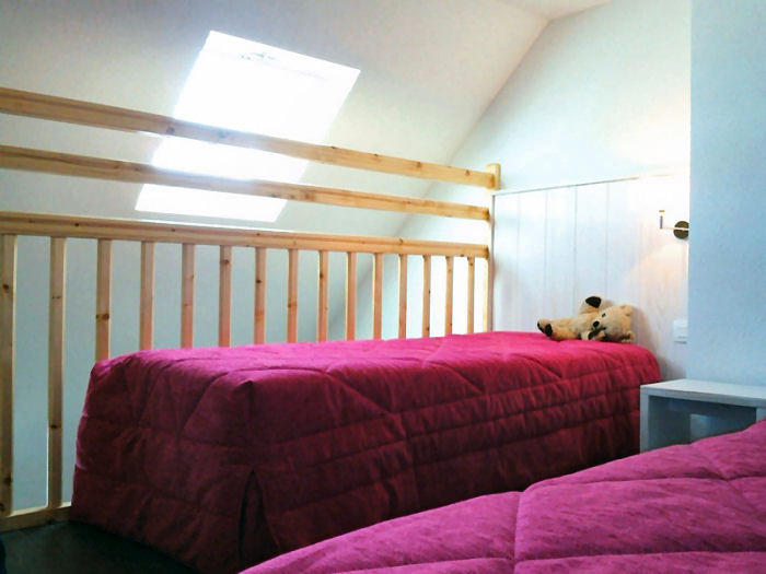 2 pièces de 20/25m² environ pour 2 à 4 personnes et situé au dernier étage. Il se compose d'un séjour avec un canapé convertible pour deux personnes au rez-de -chaussée, d'une kitchenette équipée et de WC. A l'étage, 1 chambre fermée avec un lit double pour 2 personnes, une salle de bains ou salle d'eau avec WC.A noter : Logement recommandé pour 2 personnes