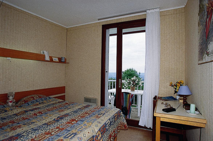 Appartement 3 pièces de 44m² pour 6 personnes, composé d'une kitchenette équipée, d'un séjour avec 2 lits simples, d'une chambre avec 2 lits simples, d'une seconde chambre avec 2 lits simples ou d'une "cabine" avec 2 lits superposés, d'une salle de bains avec douche et WC et d'une terrasse.A noter : logement en demi-pension ou pension complète.