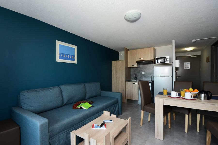 Pour avoir plus de détails et réserver cet hébergement, choisissez une date ci-dessus et cliquez sur voir l'offre ! Vous serez redirigé vers le site proposant la location.Les hébergementsBénéficiant d'une situation privilégiée à 300 m du centre, la résidence vous propose des appartements confortables, entièrement équipés, ainsi qu'un espace détente (payant) composé d'un hammam et d'une salle de fitness et, à partir de mi-avril, une piscine extérieure chauffée. À votre disposition sur place : parking extérieur et parking couvert (payant).Votre Location : 2 pièces cabine 6 personnes (41 m²)41m2, Séjour avec canapé 2 places Kitchenette équipée (plaque vitrocéramique, micro-ondes/gril, lave-vaisselle) Chambre avec 1 lit 160 Cabine avec 1 lit 140 Salle de douche avec WCLe prix comprendLa Formule "Location" - La télévision - Le parking extérieur - L'accès à la piscine extérieure chauffée (à partir de mi-avril) La Formule "Escapade" - pour les courts séjours : - Le linge de lit (lits faits à l?arrivée excepté couchages dans le séjour) - Le linge de toilette - La télévision - Le ménage de fin de séjour (hors kitchenette et vaisselle) - Les services gratuits de la formule locationLe prix ne comprend pas- La caution - La taxe de séjour - Les assurances optionnelles - Les boissons, repas - La location du linge de lit - La location linge de toilette - La location linge de lit et de toilette - L'accès à l'espace détente - L'accès au parking couvert - La location du kit bébé - Le ménage fin de séjour sur demande - Le supplément lié aux animaux admisHoraires et conditionsConditions : Prix en euros, par logement et par séjour. Tarifs valables jusqu'au 31/03/19 et susceptibles d'évoluer après cette période. Caution à régler sur place : 300 ? (2 versements : appartement + ménage) La caution est restituée après inventaire le jour du départ ou renvoyée par courrier. L?hébergement doit être rendu en parfait état de propreté. Dans le cas contraire une somme forfaitaire sera retenue sur la caution. Taxe de séjour à régler sur place : 1,25?/personne/nuit (+18 ans) Horaires d'arrivée et de départ : Formule Location : arrivée à partir de 17h - Départ avant 10h Formule Escapade : arrivée à partir de 16h - Départ avant 11h En cas d?arrivée en dehors des heures d?ouverture de l?accueil, prévenir obligatoirement la résidence qui vous indiquera la marche à suivre.