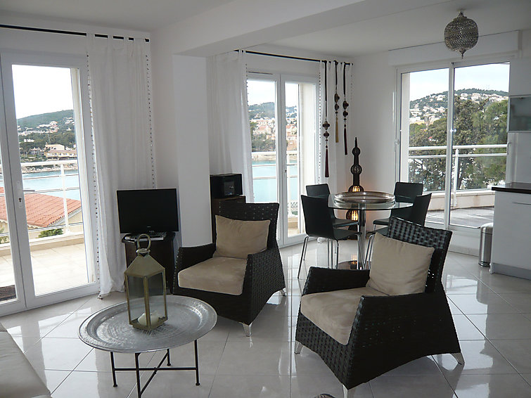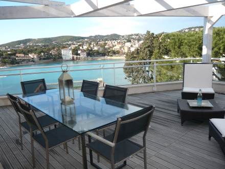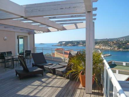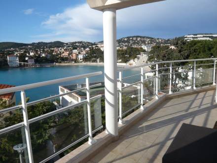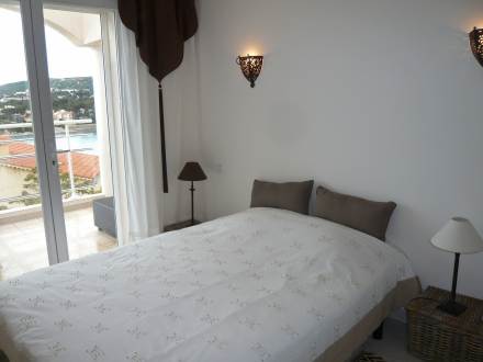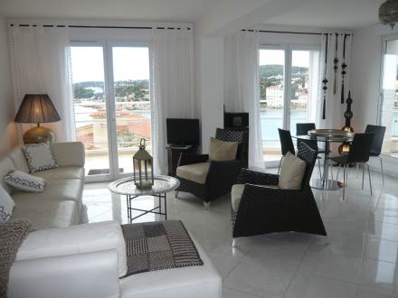 Pour avoir plus de détails et réserver cet hébergement, choisissez une date ci-dessus et cliquez sur voir l'offre ! Vous serez redirigé vers le site proposant la location.Apt 3 pièces 70 m2 au 1er étage, spacieux et clair, aménagement très confortable: séjour/salle à manger avec table pour les repas, TV, chaîne stéréo et air-conditionné. Sortie sur la terrasse. 1 chambre avec 1 grand-lit (140 cm, longueur 190 cm), lavabo et douche. Sortie sur la terrasse. 1 chambre avec 1 grand-lit (140 cm, longueur 190 cm), air-conditionné. Sortie sur la terrasse. Cuisine ouverte (4 plaques de cuisson, lave-vaisselle, congélateur, cafetière électrique, combiné micro-ondes). Sortie sur la terrasse. Salle de bains, WC séparé. Grande terrasse 70 m2, situation nord-ouest terrasse 15 m2, situation ouest. Meubles de terrasse, barbecue électrique, chaises longues. Superbe vue panoramique sur la mer. A disposition: lave-linge, sèche-linge, fer à repasser, sèche-cheveux. Place de parking. Veuillez noter: maximum 1 animal/ chien de petite taille autorisé. TV seulement FR. -Terrasse en teck, baignoire balnéo.