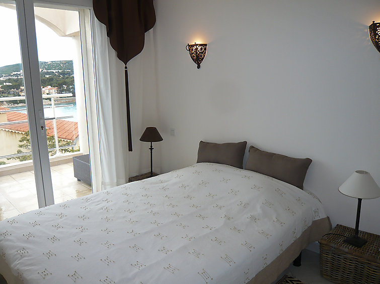 Apt 3 pièces 70 m2 au 1er étage, spacieux et clair, aménagement très confortable: séjour/salle à manger avec TV (satellite), lecteur CD, chaîne stéréo et air-conditionné. Sortie sur la terrasse. 1 chambre avec 1 grand-lit (140 cm, longueur 190 cm), lavabo et douche. Sortie sur la terrasse. 1 chambre avec 1 grand-lit (140 cm, longueur 190 cm), air-conditionné. Sortie sur la terrasse. Cuisine ouverte (4 plaques de cuisson, lave-vaisselle, congélateur, combiné micro-ondes). Sortie sur la terrasse. Salle de bains, WC séparé. Grande terrasse 70 m2, situation nord-ouest terrasse 15 m2, situation ouest. Meubles de terrasse, barbecue électrique. Superbe vue panoramique sur la mer. A disposition: lave-linge, sèche-linge. Place de parking. Veuillez noter: maximum 1 animal/ chien de petite taille autorisé. TV seulement FR. -Terrasse en teck, baignoire balnéo.