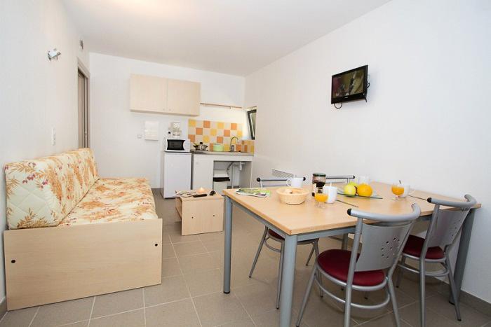 Pour avoir plus de détails et réserver cet hébergement, choisissez une date ci-dessus et cliquez sur voir l'offre ! Vous serez redirigé vers le site proposant la location.3 pièces 3/5 personnes de 31m², composé d'un canapé-lit pour 1 personne, d'un coin cuisine équipé, d'une chambre avec un lit double, d'une seconde chambre avec 2 lits simples, d'une salle de bains avec une douche et WC ainsi qu'une terrasse.