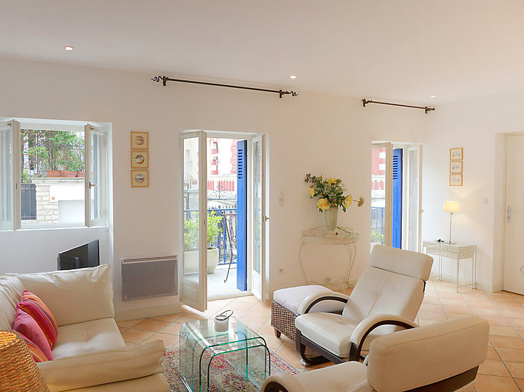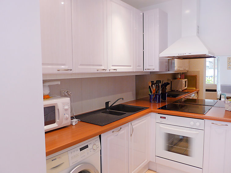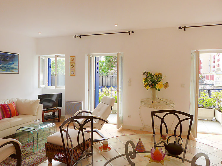 Apt 3 pièces 77 m2, au rez-de-chaussée. Aménagement fonctionnel et agréable: séjour/salle à manger avec WC séparés et TV (écran plat). Sortie sur la terrasse. 1 chambre avec 1 lit double (1 x 160 cm), TV. 1 chambre avec 1 lit double (1 x 140 cm). Cuisine (four, lave-vaisselle, 3 plaques à induction, four micro-ondes, congélateur, cafetière électrique). Salle de bains. Terrasse 10 m2. Meubles de terrasse. A disposition: lave-linge. Internet (Connexion WIFI, gratuit). Veuillez noter: logement pour non fumeurs, pas de parking.