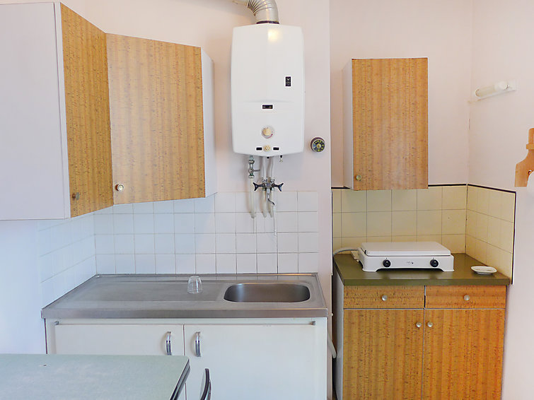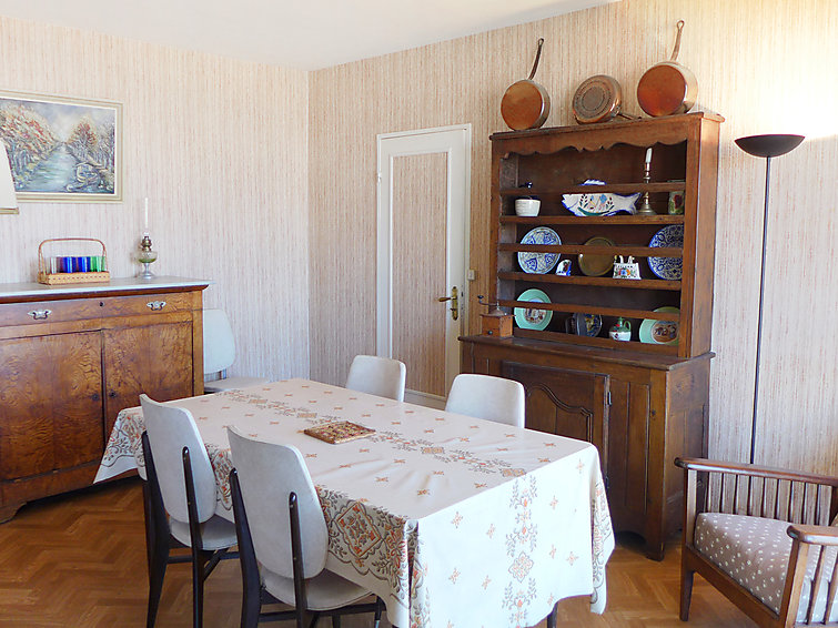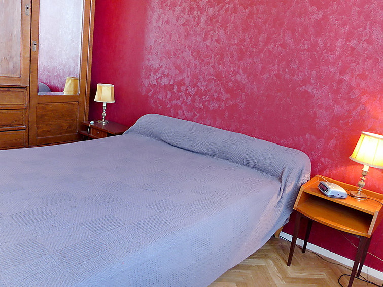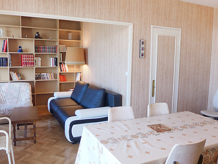 Apt 3 pièces 63 m2 au 6ème étage. Aménagement fonctionnel et rustique: séjour/salle à manger avec 1 divan-lit double (1 x 140 cm), TV. Sortie sur le balcon. 1 chambre avec 1 grand-lit (1 x 140 cm). 1 chambre avec 1 grand-lit (1 x 140 cm). Cuisine (2 plaques de cuisson, four micro-ondes, cafetière électrique) avec table pour les repas. Sortie sur le balcon. Salle de bains, WC séparé. Chauffage au gaz. Balcon 9 m2. Mobilier de balcon. Vue éloignée sur la mer et la localité. Place de parking No LIBRE.