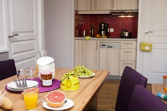 Appartement avec un coin cuisine entièrement équipé de 2 plaques vitrocéramiques, d'un réfrigérateur, d'un mini-four, d'un mini lave-vaisselle, d'une cafetière électrique. Tous les couchages sont équipés de couettes. Téléphone (payant), télévision écran plat, aspirateur, coffre-fort (payant), aspirateur. Balcon dans 20 appartements uniquement.