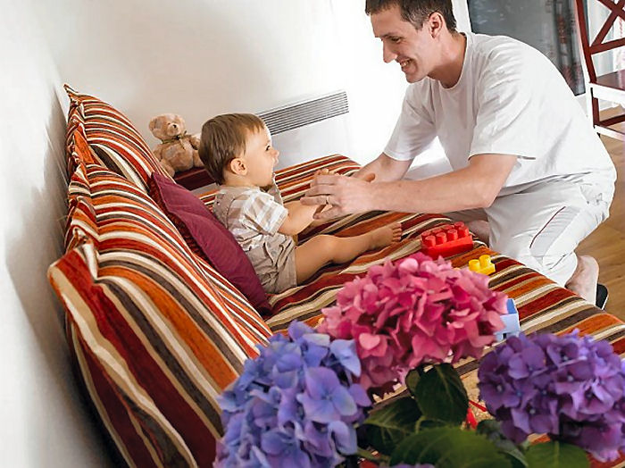 Appartement de deux pièces pour quatre personnes d'environ 40m² comprenant un séjour avec une banquette lit et un lit gigogne, une chambre avec un lit double ou deux lits simples, un coin cuisine tout équipé, une salle de bain et des toilettes séparés dans la plupart des appartements.