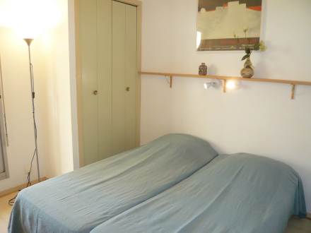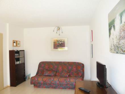 Apt 2 pièces 45 m2 au 1er étage, aménagement simple: séjour/salle à manger avec 1 divan-lit double, TV et écran plat. Chambre avec 2 lits (80 cm). Cuisine (4 plaques de cuisson, four, lave-vaisselle). Salle de bains, WC séparé. Chauffage électrique. Terrasse. Meubles de terrasse. A disposition: lave-linge. Place de parking No 41 à coté n°40 (couvert). Veuillez noter: Place de parking étroite.