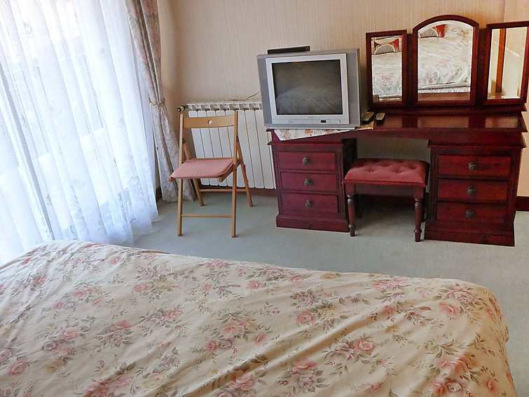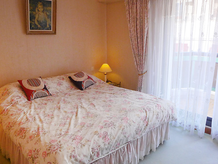 Apt 2 pièces 53 m2 au 2ème étage, situation sud. Aménagement fonctionnel: séjour/salle à manger avec 1 divan-lit, TV, chaîne stéréo et DVD. Sortie sur la terrasse, orientée sud. 1 chambre avec 1 grand-lit (2 x 90 cm), TV. Sortie sur la terrasse, orientée sud. Cuisine (4 plaques de cuisson, four, lave-vaisselle, four micro-ondes, cafetière électrique). Bain/WC. Chauffage au gaz. Terrasse 11 m2, situation sud. A disposition: lave-linge.