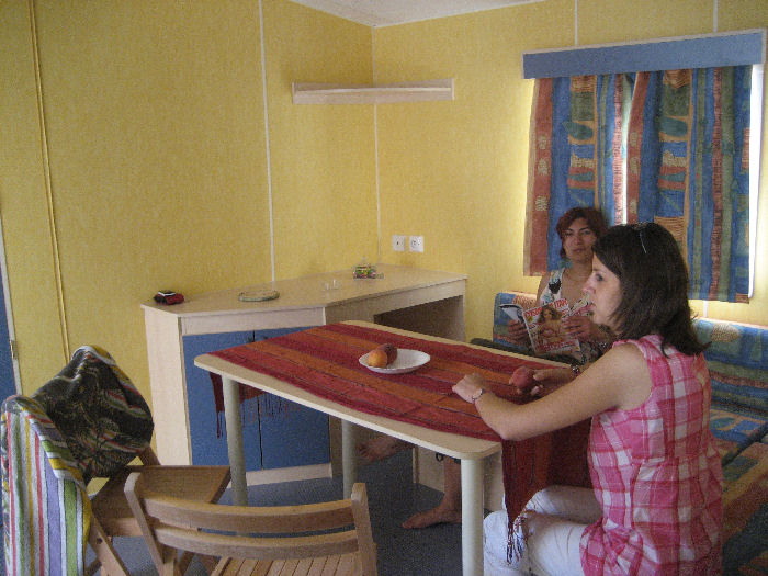 30 m2 de surface 1 Chambre avec 1 Lit double 1 Chambre avec 2 Lits simples 1 S?jour avec 1 Convertible Coin Cuisine nombre de salles de douche : 1 nombre de WC s?par?s : 1 Terrasse Plaques gaz Micro-ondes R?frig?rateur Vaisselle et ustensiles de cuisine inclus Salon de jardin