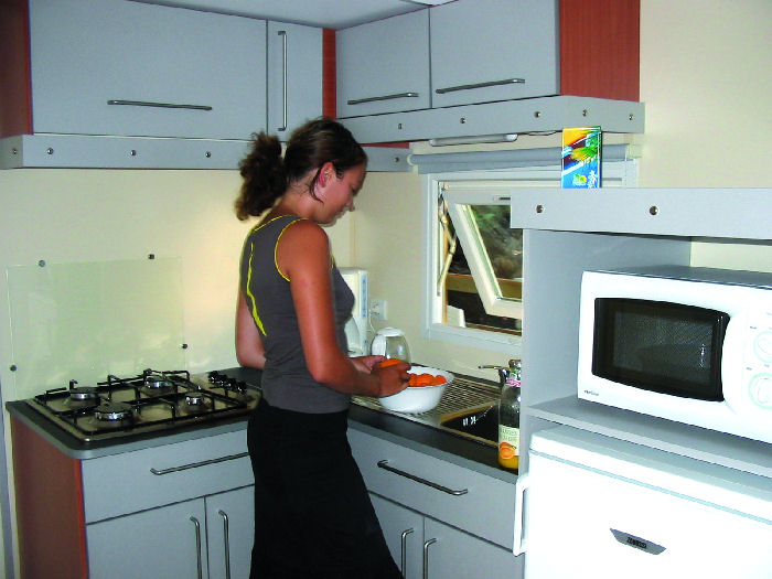 Le coin cuisine est équipé d'un réfrigérateur, d'un congélateur, de feux de cuisson, d'un micro-ondes, d'une cafetière électrique et de l'ensemble de la vaisselle. Pour chaque couchage vous disposerez de couvertures, d'alèses et d'oreillers. Côté terrasse, vous trouverez un salon de jardin et 2 transats.