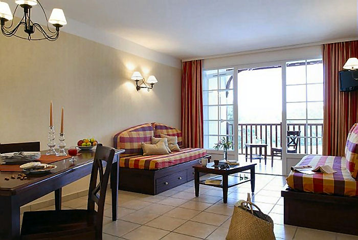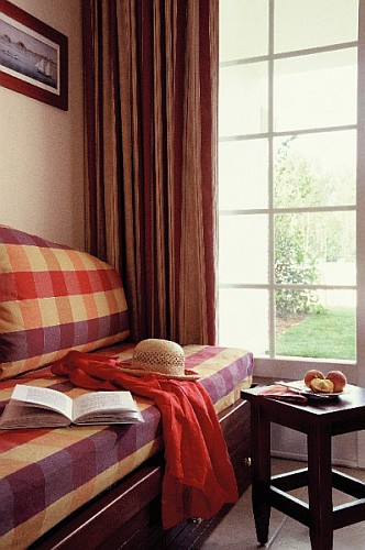 33 m2: Séjour avec 2 banquettes-lits simples dont 1 avec lit gigogne. 1 espace avec 1 lit simple.Équipements autres : A noter : Tous les appartements sont situés en rez de chaussée. Pas de WC séparés dans les studios