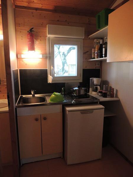 Le mobil home comprend une cuisine équipée avec 4 plaques de cuisson, réfrigérateur, cafetière électrique et vaisselle.Il dispose également d'une terrasse avec salon de jardin et parasol.Les couvertures et oreillers sont fournis.