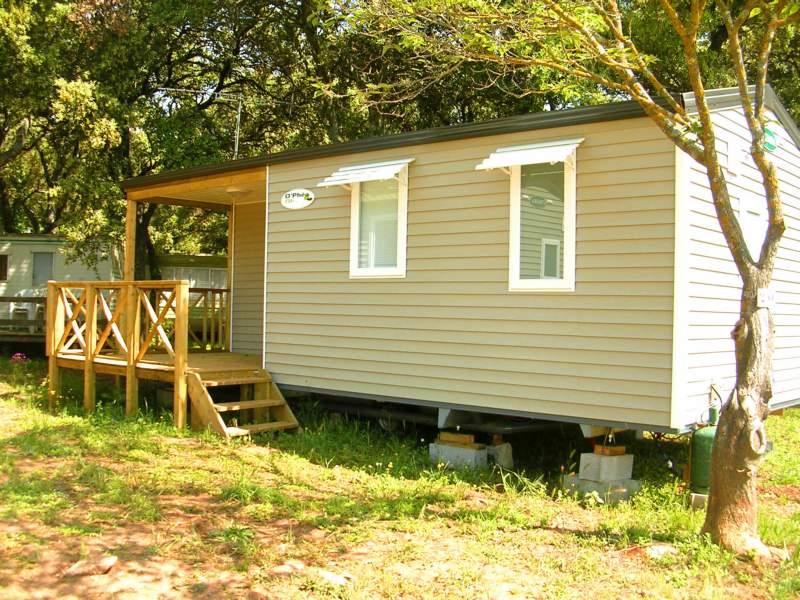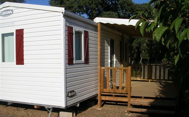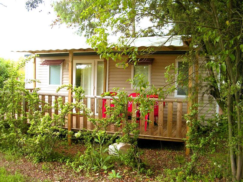 Mobil home 2/4 personnes, de 19m², composé d'une cuisine, d'un salon avec canapé convertible en couchage pour 2 personnes, d'une chambre avec un lit double et d'une salle de bains avec douche et WC, d'une terrasse semi-couverte de 7.50m².