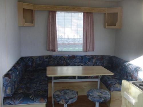 Le Mobil Home comprend une cuisine équipée avec 4 plaques de cuisson, micro-ondes, grille-pain, frigo / congélateur, cafetière électrique et vaisselle pour 8 personnes.Il dispose également d'une terrasse couverte et d'un salon de jardin.Les couvertures et oreillers sont fournis.