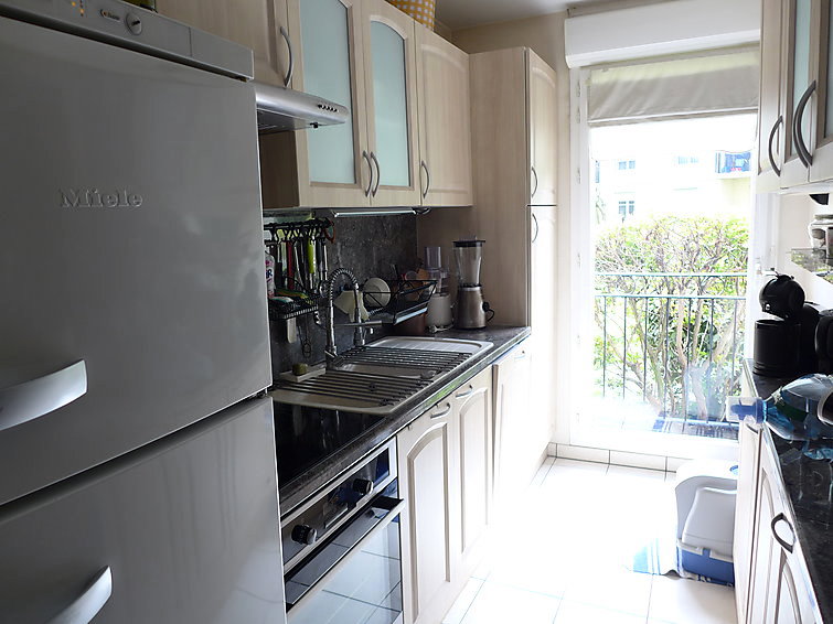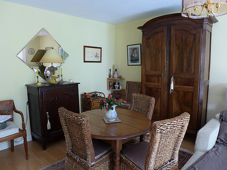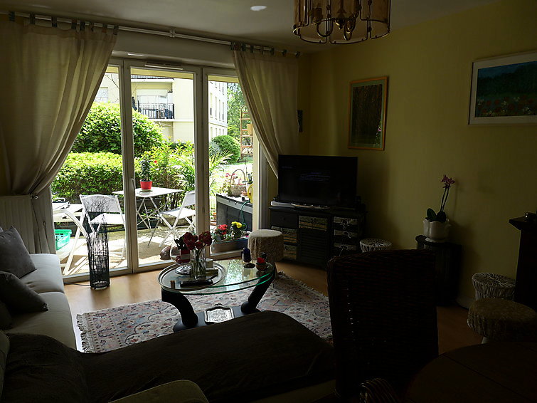 Apt 2 pièces 60 m2, rez-de-chaussée surélevé. Séjour/salle à manger avec TV. Sortie sur la terrasse. 1 chambre avec 1 grand-lit. Cuisine (four, 3 plaques vitrocéramique, four micro-ondes, congélateur). Douche, WC séparé. A disposition: lave-linge, sèche-linge.