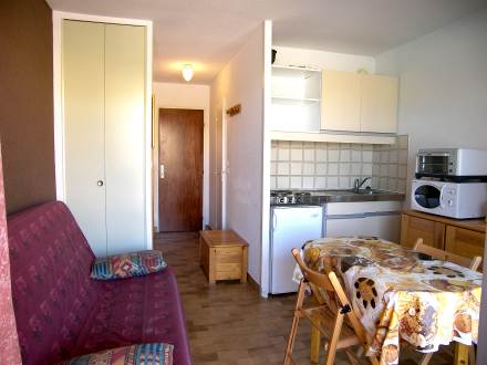 Pour avoir plus de détails et réserver cet hébergement, choisissez une date ci-dessus et cliquez sur voir l'offre ! Vous serez redirigé vers le site proposant la location.Studio 19 m2 au 1er étage: entrée avec 1 x 2 lits superposés (70 cm). Séjour/salle à manger avec 1 divan-lit double et écran plat. Coin cuisine (3 plaques de cuisson, mini-four, four micro-ondes). Bain/WC. Chauffage électrique. Balcon 5 m2, situation est. Meubles de terrasse. Vue sur la piscine. Garage. Maximum 1 animal/ chien autorisé.