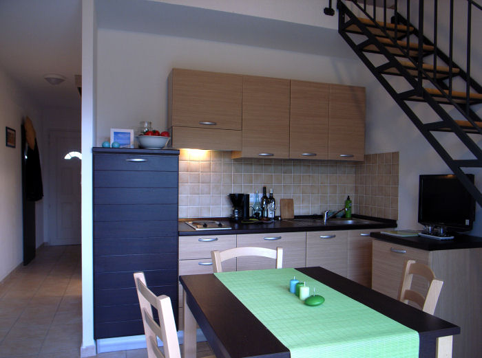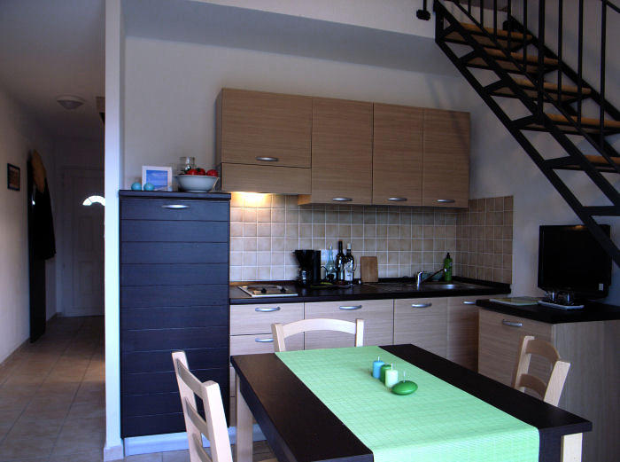 Dans le coin cuisine vous trouverez un lave-vaisselle, un four micro-ondes, un grand réfrigérateur avec partie congélateur, ainsi que l'ensemble des ustensiles de cuisine. Le linge de lit vous est fourni. Une télévision écran plat est à votre disposition (avec supplément) dans le séjour.La mezzanine dispose d'un ventilateur.