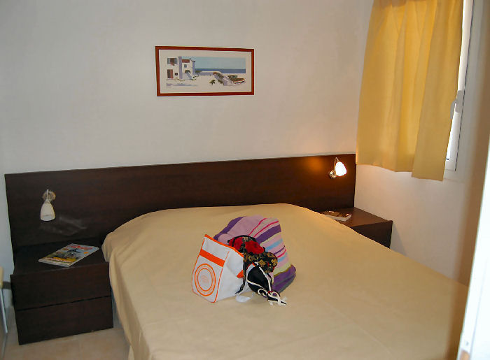 Appartement 2 pièces 4 personnes de 27m² environ, composé d'un séjour avec une banquette-lit (couchage pour 2 personnes), d'une chambre avec 1 lit double, d'une kitchenette équipée, d'une salle d'eau avec toilettes et d'un balcon ou d'une terrasse avec salon de jardin et parasol. A noter: certains logements sont accessibles aux personnes à mobilité réduite.
