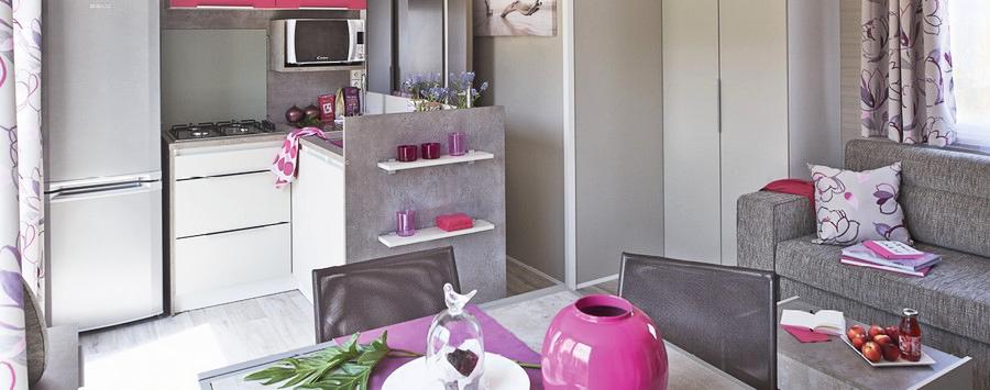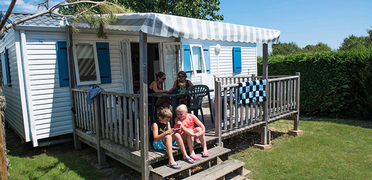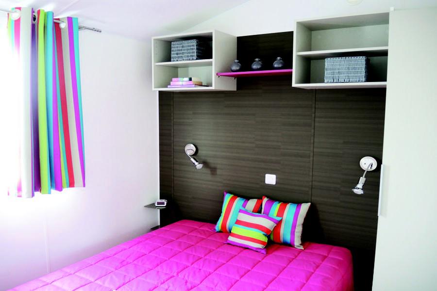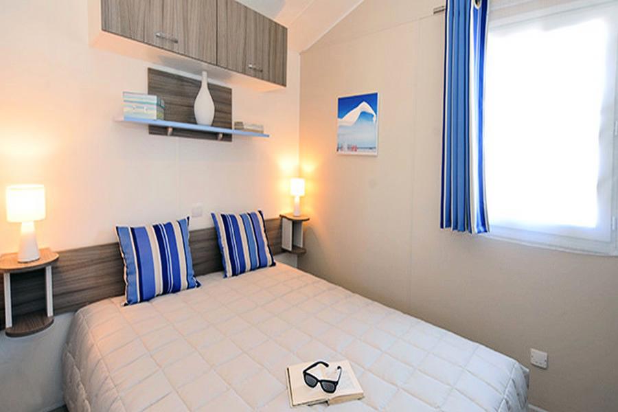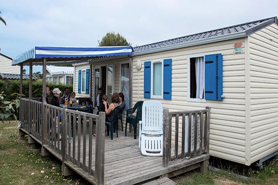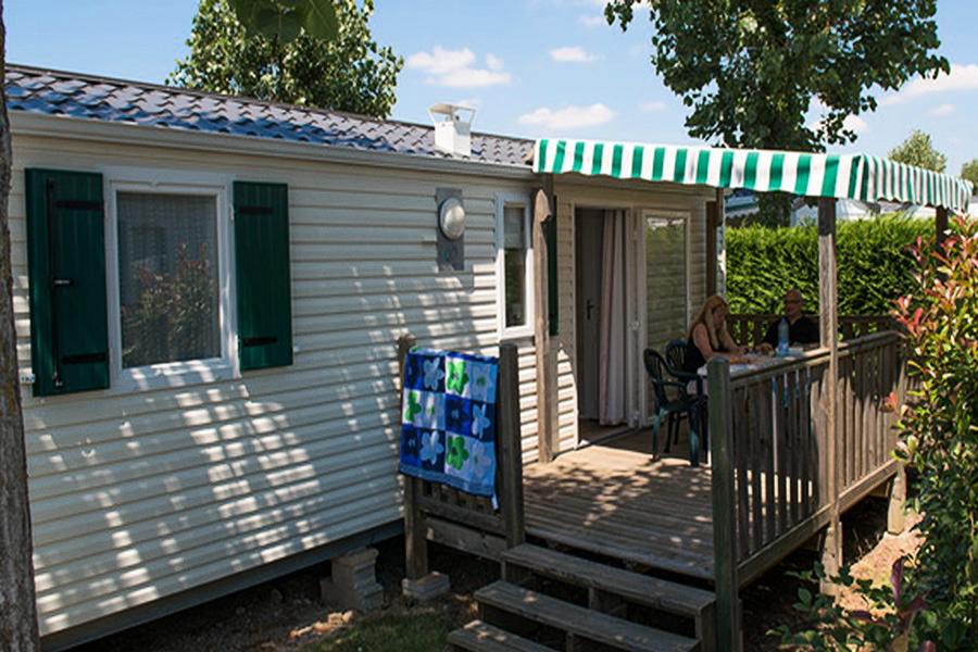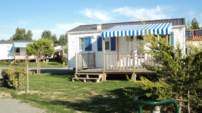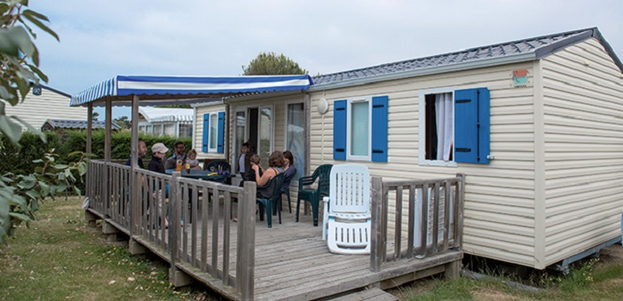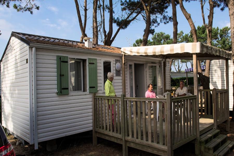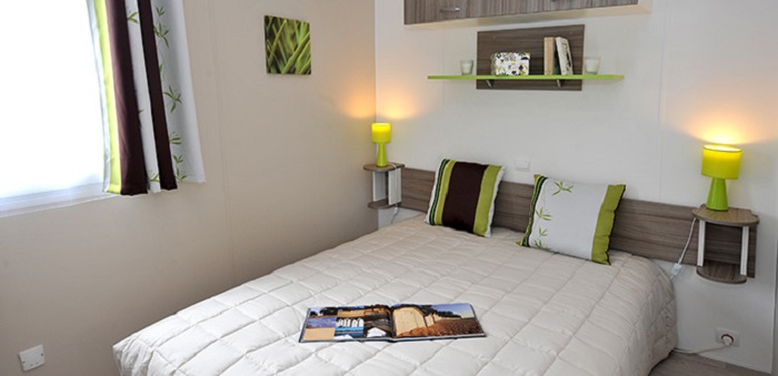 Le mobil home 3 pièces de 28m² pouvant accueillir de 4 à 5 personnes est composé d'une kitchenette, d'une salle de douche, de WC séparés, d'une chambre comprenant 1 lit double, d'une seconde chambre avec deux lits simples, un salon avec banquette convertible en lit deux couchages et d'une terrasse. Possibilité d'intégrer un lit bébé dans la chambre double. Certains modèles sont accessibles aux personnes à mobilité réduite (il est important de vérifier la disponibilité avant de réserver)