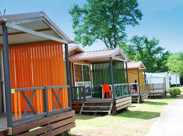 Pour avoir plus de détails et réserver cet hébergement, choisissez une date ci-dessus et cliquez sur voir l'offre ! Vous serez redirigé vers le site proposant la location.Bungalow Toilé 3 Pièces 4/5 Personnes d'environ 25m² composé d'un séjour avec coin cuisine équipé, d'une chambre avec 1 lit double, d'une chambre avec 3 lits simples dont 1 superposé. Terrasse en bois avec auvent de 9m² et salon de jardin. A noter: Ce logement ne dispose pas de sanitaires.