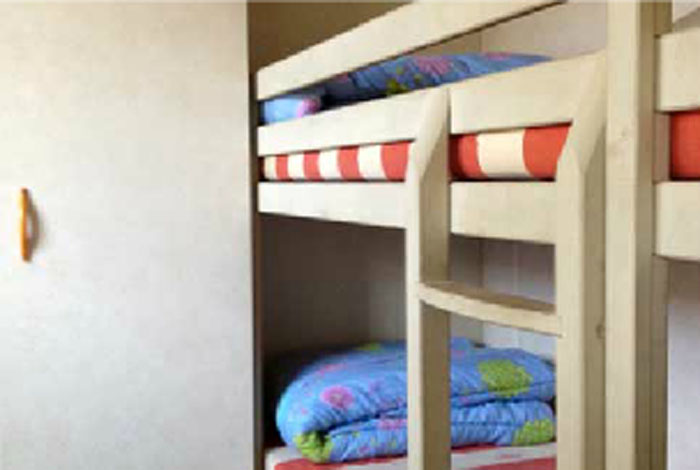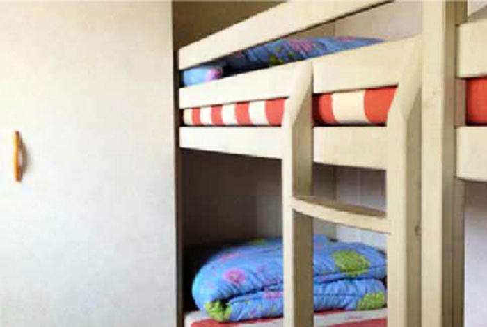 Le chalet Eco comprend un espace salon/repas avec banquette, un coin cuisine équipé, ainsi qu?une salle de bains avec cabine de douche et WC. Il est composé d?une chambre avec un lit double et d?une chambre avec trois lits simples séparés, dont un superposé. A l?extérieur, le chalet dispose d?une terrasse semi-couverte avec salon de jardin. Possibilité de 5ème personne en supplément 36.50?/ semaine