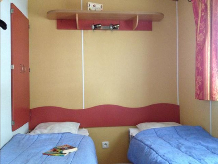 Pour avoir plus de détails et réserver cet hébergement, choisissez une date ci-dessus et cliquez sur voir l'offre ! Vous serez redirigé vers le site proposant la location.Mobil Home 3 pièces de 27 m² pour 4 personnes composé d'un coin cuisine, d'un espace salon/repas avec banquette convertible, d'une chambre avec 1 lit double (140x190), d'une seconde chambre avec 2 lits séparés (80x190), d'une salle de bain, de WC séparé et d'une terrasse semi-couverte.