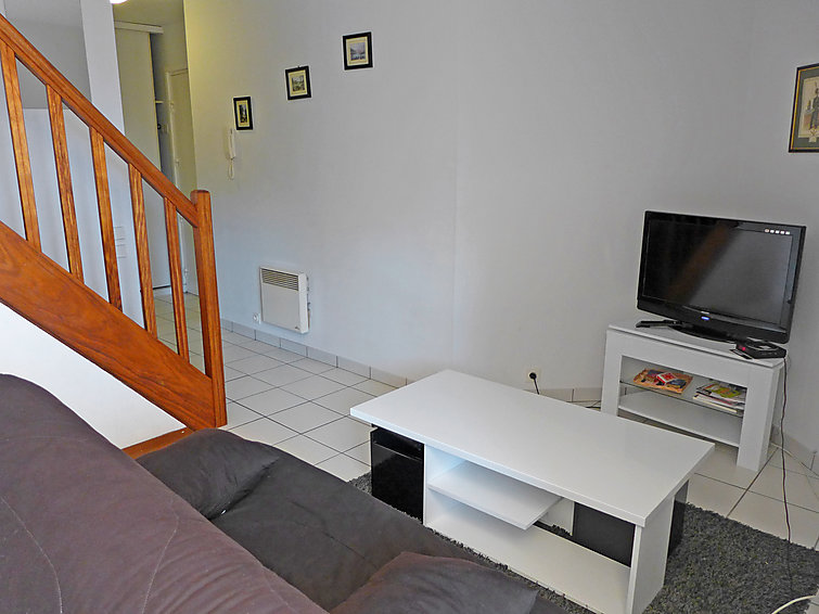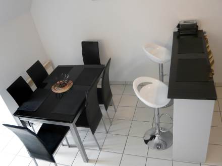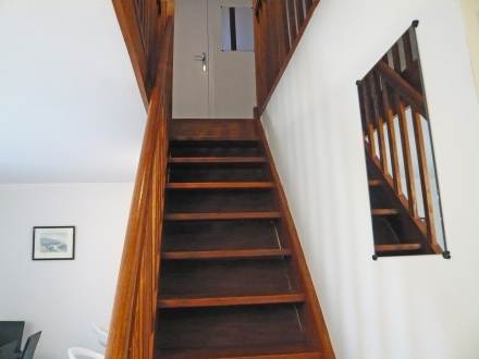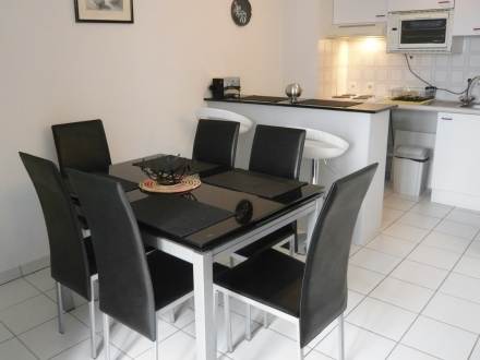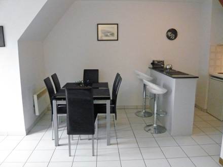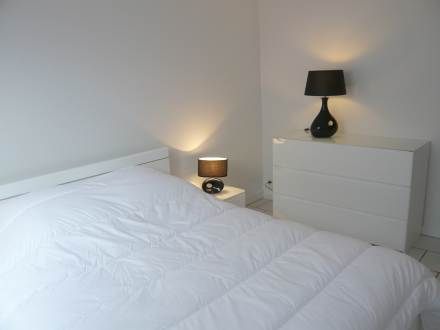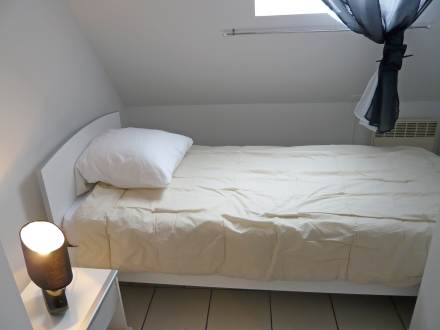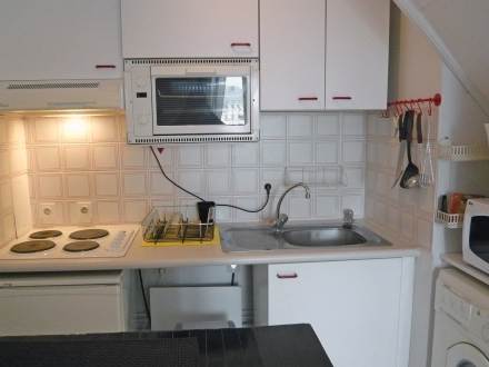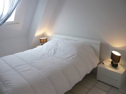 Apt 3 pièces 63 m2 sur 2 niveaux au 4ème étage, situation sud-ouest, complétement rénové en 2011: séjour/salle à manger avec 1 divan-lit double (140 cm), Télévision numérique et écran plat. Coin cuisine (4 plaques de cuisson, mini-four, four micro-ondes, cafetière électrique) avec bar. Salle de bains, WC séparé. Chauffage électrique. À l'étage supérieur: 1 chambre, mansardée avec 1 lit (90 cm), volet roulant électrique. 1 chambre, mansardée avec 1 grand-lit (140 cm), volet roulant électrique. A disposition: lave-linge, sèche-linge. Place de parking No 1 (couvert). Maximum 1 animal/ chien autorisé.