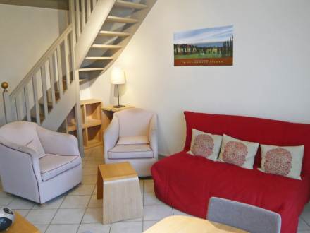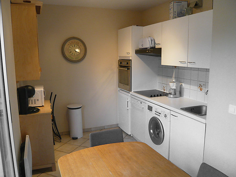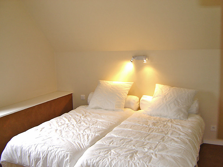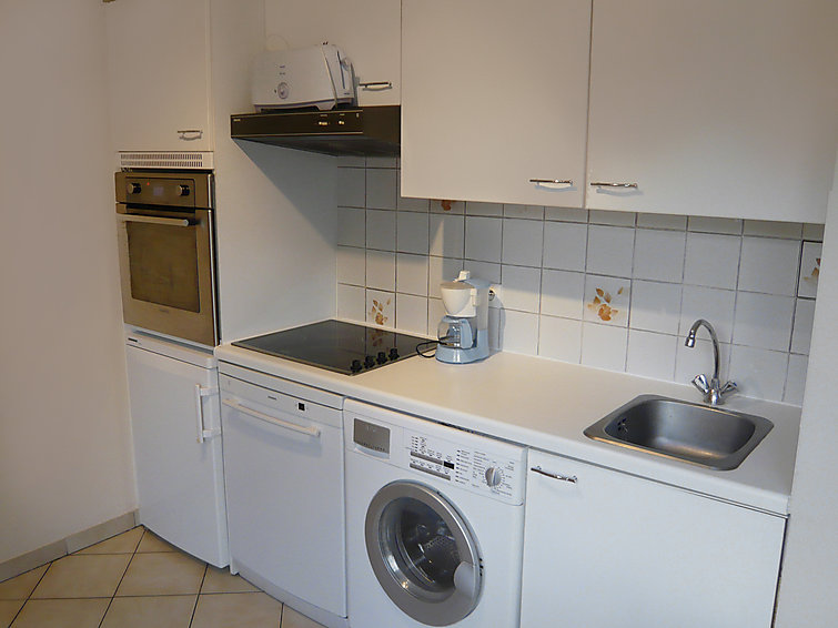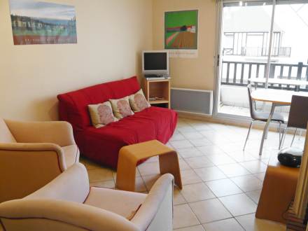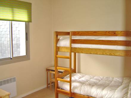 Apt 3 pièces 50 m2 sur 2 niveaux au 1er étage, situation sud: séjour/salle à manger avec 1 divan-lit double (140 cm), Télévision numérique, écran plat, vidéo et radio. Sortie sur le balcon. 1 chambre avec 1 x 2 lits superposés (90 cm). Coin cuisine (4 plaques de cuisson, four, lave-vaisselle, plaque vitro céramique, four micro-ondes, cafetière électrique). Salle de bains, WC séparé. À l'étage supérieur: 1 chambre, mansardée avec 2 lits (90 cm), DVD. Chauffage électrique. Balcon 7 m2. Mobilier de balcon. A disposition: lave-linge, sèche-linge, fer à repasser, lit bébé jusqu'à 3 ans. Place de parking.