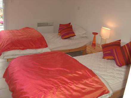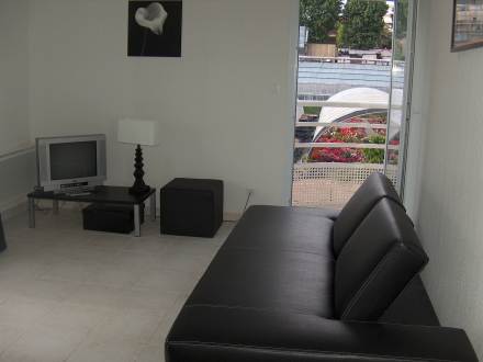 Pour avoir plus de détails et réserver cet hébergement, choisissez une date ci-dessus et cliquez sur voir l'offre ! Vous serez redirigé vers le site proposant la location.Apt 2 pièces 45 m2 au 1er étage. Séjour/salle à manger avec 1 divan-lit (90 cm), TV et DVD. Sortie sur la terrasse. 1 chambre avec 2 lits (90 cm). Sortie sur le balcon. Cuisine (four, lave-vaisselle, 4 plaques vitrocéramique, four micro-ondes, cafetière électrique). Salle de bains, WC séparé. Chauffage électrique. Terrasse 8 m2, situation ouest. Meubles de terrasse. A disposition: lave-linge. Internet (Connexion WIFI, en sus). Garage No 22. Veuillez noter: logement pour non fumeurs.