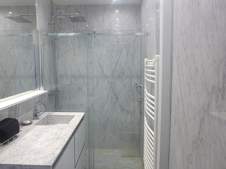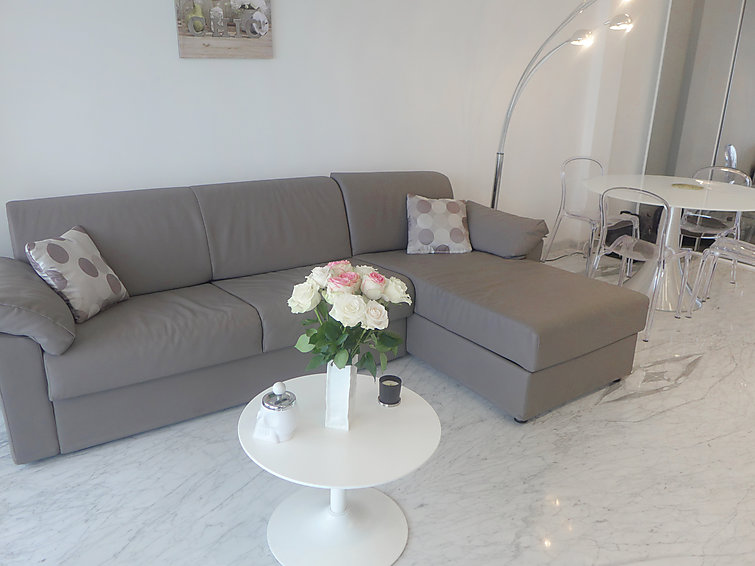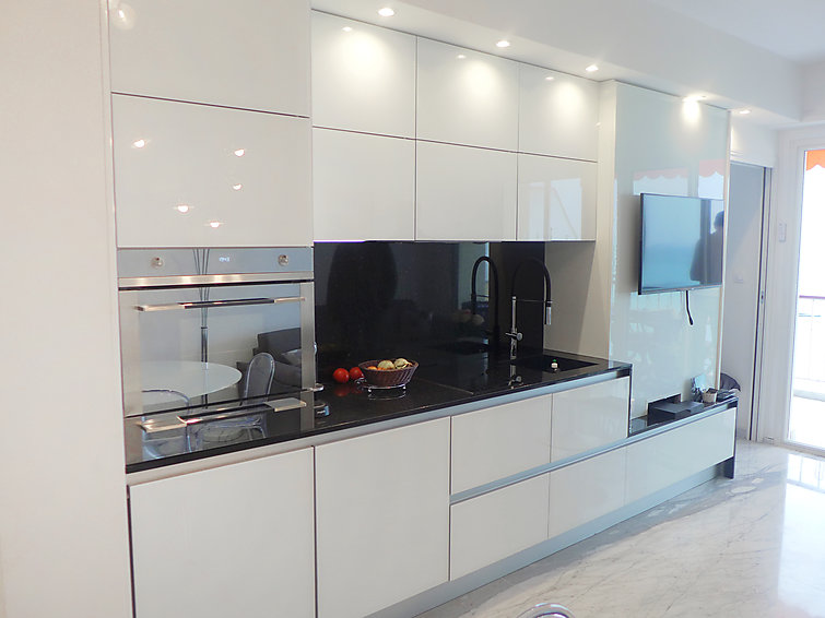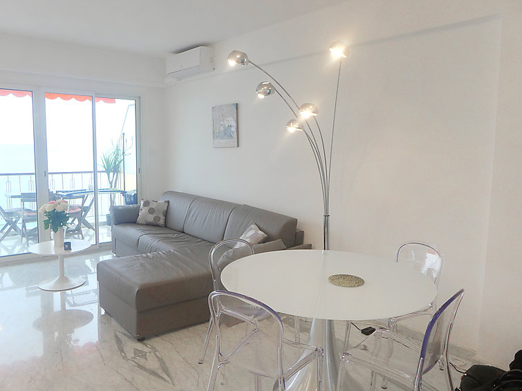 Apt 2 pièces 32 m2 au 5ème étage. Clair, aménagement très confortable et moderne: séjour/salle à manger avec 1 divan-lit double (140 cm, longueur 190 cm), écran plat et air-conditionné. Sortie sur la terrasse. Alcôve avec 1 grand-lit (140 cm, longueur 190 cm). Cuisine ouverte (four, lave-vaisselle, 2 plaques à induction, four micro-ondes). Douche/WC. Très belle vue sur la mer. A disposition: lave-linge. Internet (Connexion WIFI). Place de parking.