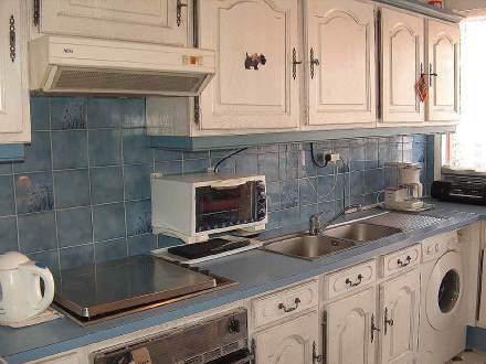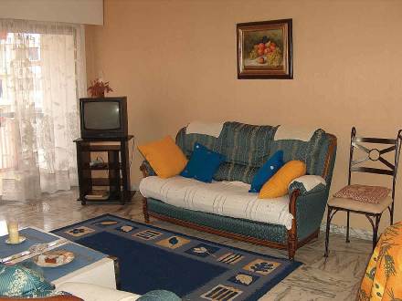 Apt 3 pièces 75 m2 au 5ème étage, aménagement fonctionnel: séjour/salle à manger avec TV et radio. Sortie sur la terrasse, orientée est. 1 chambre avec 1 grand-lit. 1 chambre avec 1 divan-lit double (140 cm). Sortie sur le balcon, orientée ouest. Cuisine (4 plaques de cuisson, mini-four, congélateur). Salle de bains, bidet, WC séparé. Petit balcon 5 m2, situation ouest terrasse 15 m2, situation est. Meubles de terrasse. Vue latérale sur la mer. A disposition: lave-linge, fer à repasser. Place de parking No 33.