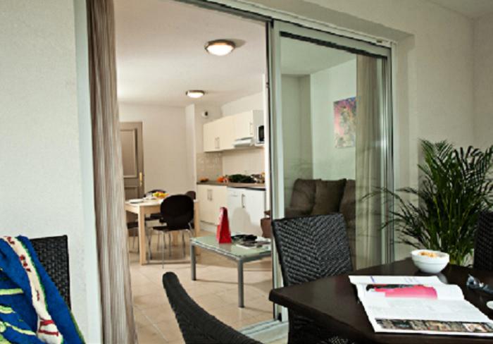 L'appartement dispose d'une cuisine équipée avec réfrigérateur, 4 plaques vitrocéramiques, four micro-ondes grill, lave-vaisselle, cafetière électrique, bouilloire et rangement. L'équipement de l'appartement comprend également télévision, climatisation réversible, table et fer à repasser et aspirateur.