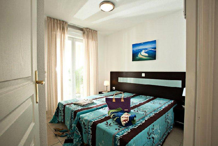 De 4 à 6 personnes, 45 m2 avec loggia ou terrasse de 7 m2 min. Idem studio, avec une chambre avec grand lit et une chambre avec lits jumeaux.