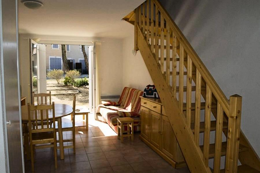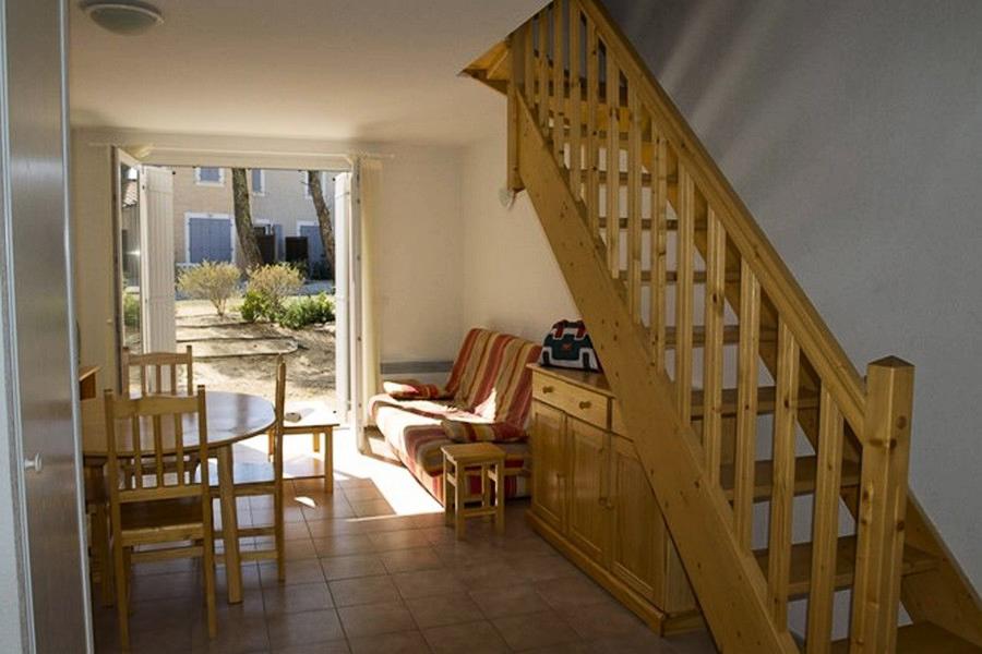 Maisonnette de 40m² de 3 pièces pour 6 personnes composée d'un séjour avec un canapé-lit pour 2 personnes, d'une chambre avec 2 lits simples ou 2 lits superposés, d'une chambre avec un lit double, d'une kitchenette équipée, d'une salle de douche et de WC séparés.Chambres à l'étage.