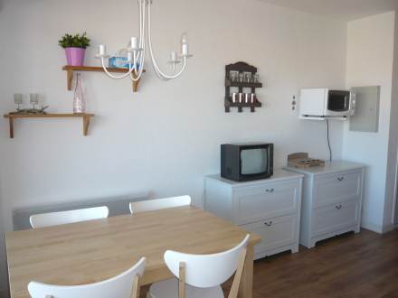 Pour avoir plus de détails et réserver cet hébergement, choisissez une date ci-dessus et cliquez sur voir l'offre ! Vous serez redirigé vers le site proposant la location.Studio 25 m2 au 3ème étage. Séjour/salle à manger avec 2 lits (70 cm, longueur 190 cm), 1 divan-lit double (140 cm, longueur 190 cm), TV (écran plat). Sortie sur le balcon. Coin cuisine (2 plaques de cuisson, four micro-ondes, cafetière électrique). Bain/WC. Balcon 7 m2, situation est. Mobilier de balcon, chaises longues (1). A disposition: fer à repasser. Internet (Connexion WIFI, en sus). Place de parking. Veuillez noter: maximum 1 animal/ chien autorisé. Détecteur de fumée.