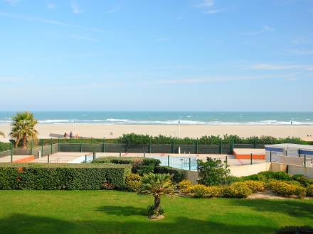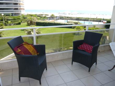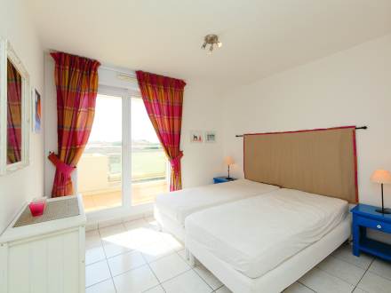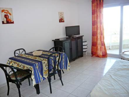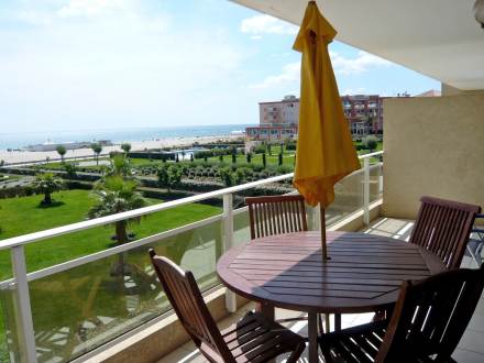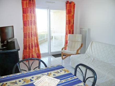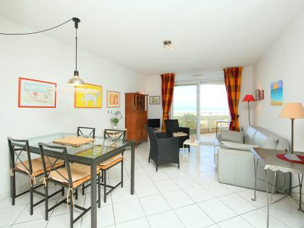 Pour avoir plus de détails et réserver cet hébergement, choisissez une date ci-dessus et cliquez sur voir l'offre ! Vous serez redirigé vers le site proposant la location.Apt 2 pièces 40 m2 au 1er étage: séjour/salle à manger avec 1 divan-lit et TV. Sortie sur la terrasse. 1 chambre avec 1 grand-lit (1 x 160 cm). Sortie sur la terrasse. Cuisine ouverte (4 plaques de cuisson, lave-vaisselle, four micro-ondes). Salle de bains, WC séparé. Air-conditionné. Terrasse 12 m2. Meubles de terrasse. Vue sur la mer. A disposition: lave-linge. Place de parking No 106.