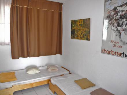 Pour avoir plus de détails et réserver cet hébergement, choisissez une date ci-dessus et cliquez sur voir l'offre ! Vous serez redirigé vers le site proposant la location.Apt 3 pièces 48 m2 au 1er étage. Aménagement agréable: séjour/salle à manger avec écran plat et chaîne stéréo. Sortie sur la terrasse. 1 chambre avec 1 grand-lit (2 x 90 cm, longueur 190 cm). Sortie sur la terrasse. 1 chambre d'enfants avec 1 x 2 lits superposés (90 cm, longueur 190 cm). Sortie sur la terrasse. Cuisine ouverte (lave-vaisselle, 4 plaques vitrocéramique, four micro-ondes, cafetière électrique, combiné micro-ondes). Salle de bains, WC séparé. Chauffage. Terrasse 8 m2, situation est terrasse 8 m2, situation ouest. Meubles de terrasse. Belle vue sur la mer et les montagnes. A disposition: lave-linge, fer à repasser. Internet (Connexion WIFI, en sus). Garage. Veuillez noter: détecteur de fumée.