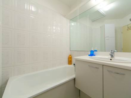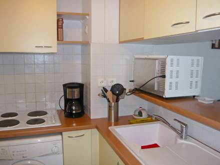 Pour avoir plus de détails et réserver cet hébergement, choisissez une date ci-dessus et cliquez sur voir l'offre ! Vous serez redirigé vers le site proposant la location.Apt 3 pièces 57 m2 au 4ème étage. Séjour/salle à manger avec 1 divan-lit double (140 cm, longueur 190 cm), TV (écran plat), lecteur CD, DVD et ventilateur. Sortie sur la terrasse. 1 chambre avec 1 grand-lit (160 cm, longueur 200 cm). Sortie sur le balcon. 1 chambre avec 2 lits (80 cm, longueur 200 cm). Sortie sur le balcon. Cuisine ouverte (4 plaques de cuisson, mini-four, four micro-ondes) avec bar. Salle de bains, WC séparé. Chauffage électrique. Balcon 9 m2, situation est balcon 12 m2, situation ouest. Meubles de terrasse. Belle vue sur la mer et les montagnes. A disposition: lave-linge, fer à repasser, sèche-cheveux. Internet (Connexion WIFI, en sus). Place de parking No 58. Veuillez noter: détecteur de fumée.