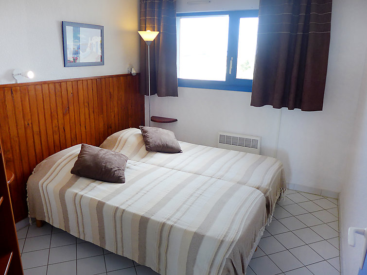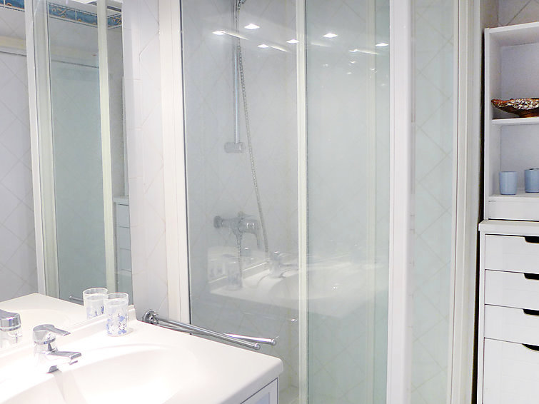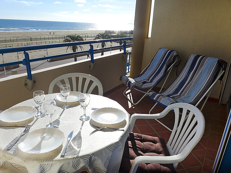 "MARIANNE", apt 2 pièces 35 m2 au 2ème étage. Séjour/salle à manger avec 1 divan-lit (140 cm, longueur 200 cm), table pour les repas et TV (écran plat). Sortie sur la terrasse. 1 chambre avec 2 lits (80 cm, longueur 190 cm). Cuisine ouverte (mini-four, 4 plaques vitrocéramique, four micro-ondes). Salle de bains, WC séparé. Terrasse 8 m2. Meubles de terrasse. Vue sur la mer. A disposition: lave-linge. Place de parking No 6.