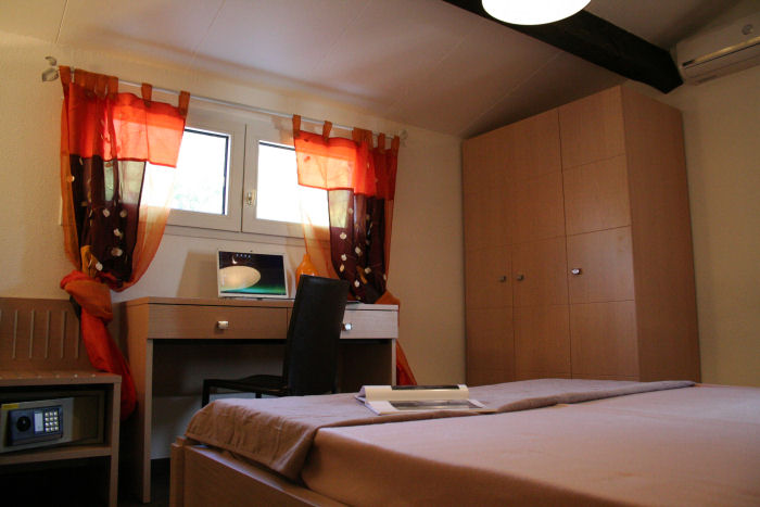 Villa 2 pièces de 36m² pour 4 personnes composée d'un séjour avec un canapé lit pour 2 personnes (couchages séparés), d'une chambre à l'étage avec un lit double ou 2 lits simples, d'une kitchenette équipée, d'une salle de bain avec WC et d'un jardinet.