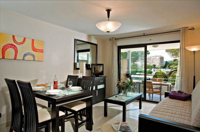 Pour avoir plus de détails et réserver cet hébergement, choisissez une date ci-dessus et cliquez sur voir l'offre ! Vous serez redirigé vers le site proposant la location.Appartement 3 pièces 6 personnes supérieur d'environ 53 m² composé de : 1 chambre avec un grand lit avec terrasse privée et vue jardin, 1 chambre avec 2 lits simples avec terrasse privée et vue jardin. 1 grande terrasse de 15 m² avec vue sur la marina.