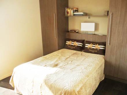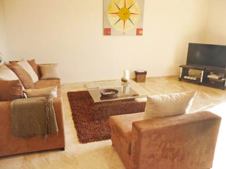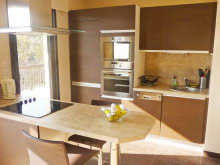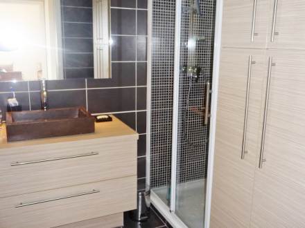 Apt 2 pièces 45 m2 au 2ème étage: séjour/salle à manger avec baie vitrée avec 1 divan-lit double (140 cm), écran plat et air-conditionné. Sortie sur la terrasse. 1 chambre avec baie vitrée avec 1 grand-lit (160 cm). Sortie sur la terrasse. Cuisine ouverte (4 plaques de cuisson, four, lave-vaisselle, four micro-ondes, cafetière électrique). Salle de bains, WC séparé. Terrasse 17 m2. Meubles de terrasse. Vue sur les montagnes. A disposition: lave-linge, sèche-cheveux. Place de parking No A2.