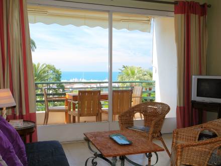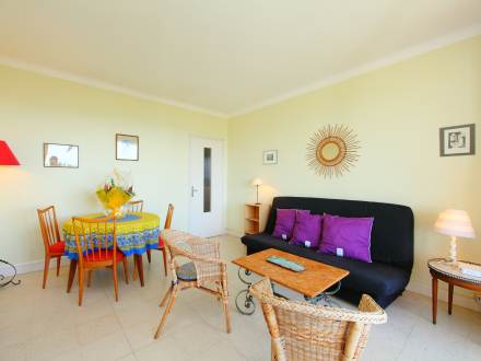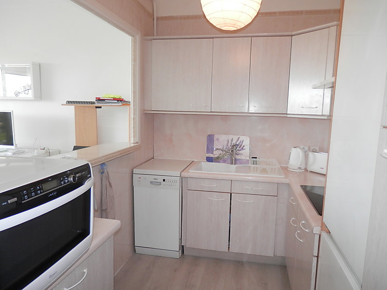 Pour avoir plus de détails et réserver cet hébergement, choisissez une date ci-dessus et cliquez sur voir l'offre ! Vous serez redirigé vers le site proposant la location.Apt 2 pièces 45 m2 au 1er étage. Aménagement fonctionnel et confortable: séjour/salle à manger avec 1 divan-lit double (140 cm), TV et lecteur CD. Sortie sur la terrasse. 1 chambre avec 2 lits (90 cm). Cuisine ouverte (lave-vaisselle, 3 plaques vitrocéramique, four micro-ondes, combiné micro-ondes). Douche/WC. Chauffage. Terrasse 10 m2. Meubles de terrasse. Belle vue sur la mer. A disposition: lave-linge. 1 animal/ chien autorisé.